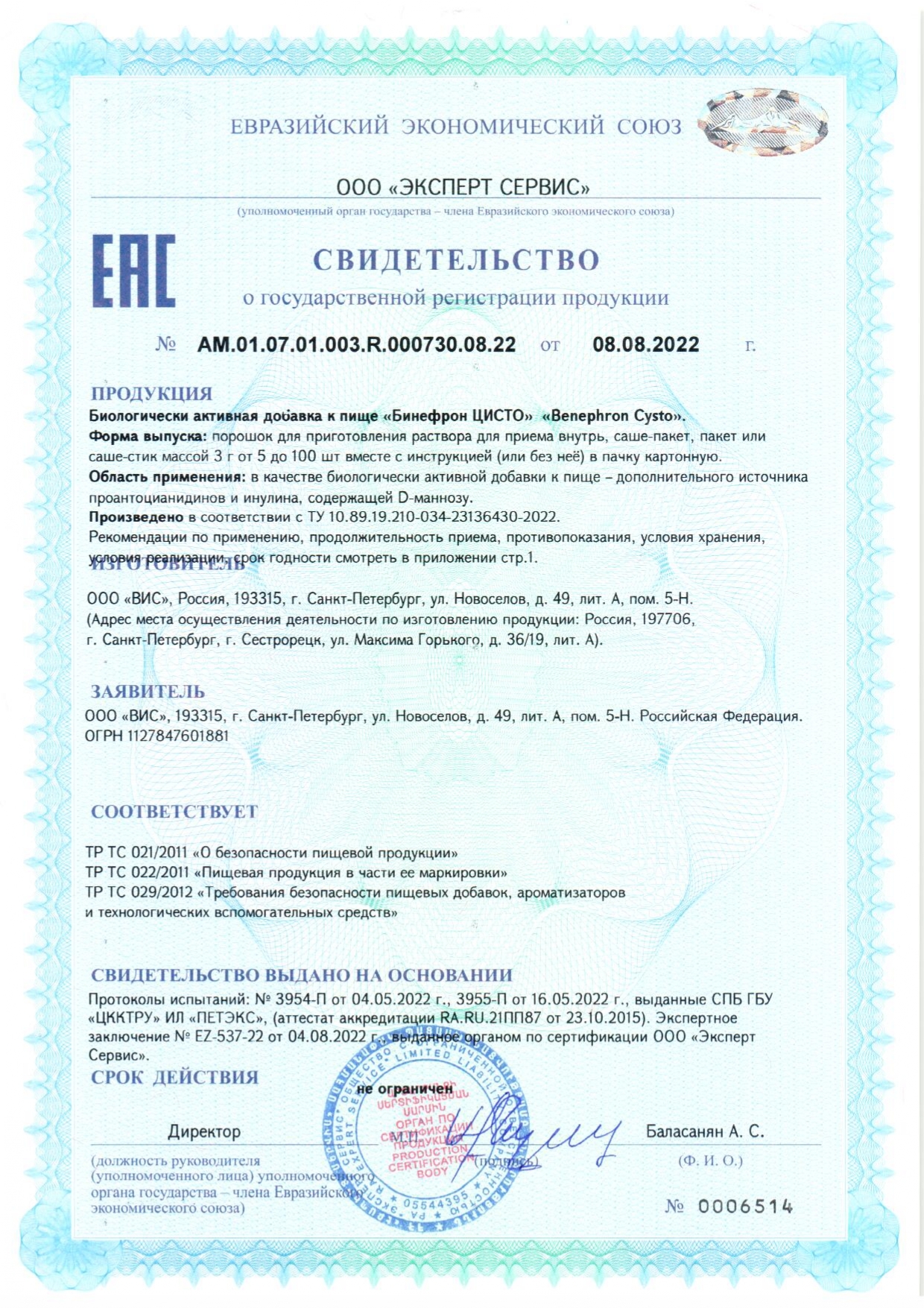 Инструкция Бинефрон ЦИСТО® «Benephron Cysto»